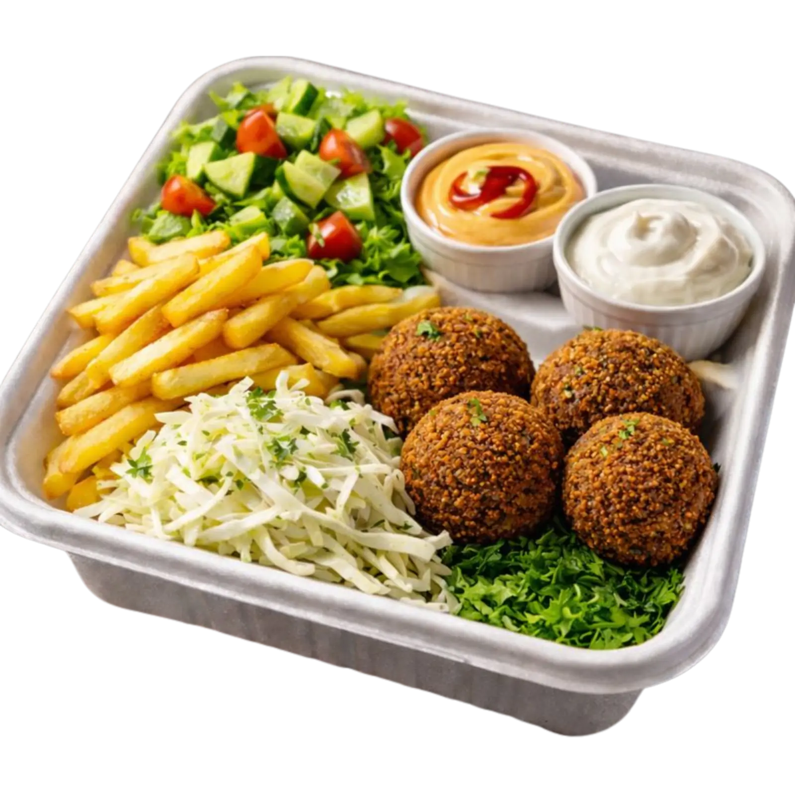 Home / Lebanese / Falafel Platter (Lebanese Style) Falafel Platter (Lebanese Style)₹190.00 Falafel Platter (Lebanese Style) quantity Add to cart Category: Lebanese Description Description Fresh homemade falafel balls platter, with pita bread, fries, salads and sauces of choice Related products Muhammara with Falafel ₹140.00 Add to cart Hummus with Pita ₹110.00 Add to cart Lebanese Shawarma Sandwich ₹170.00 Add to cart Lebanese Shawarma Platter ₹210.00 Add to cart